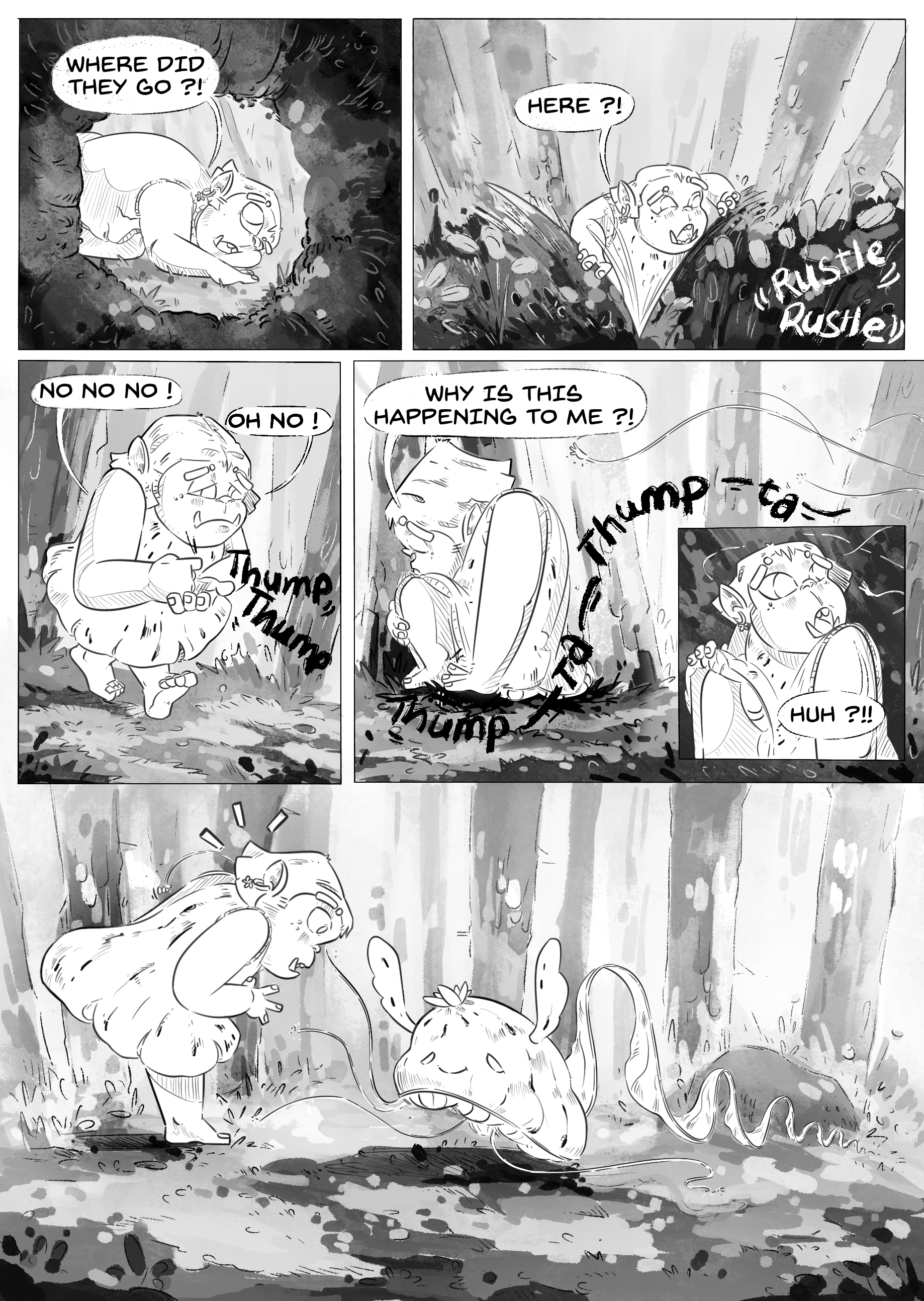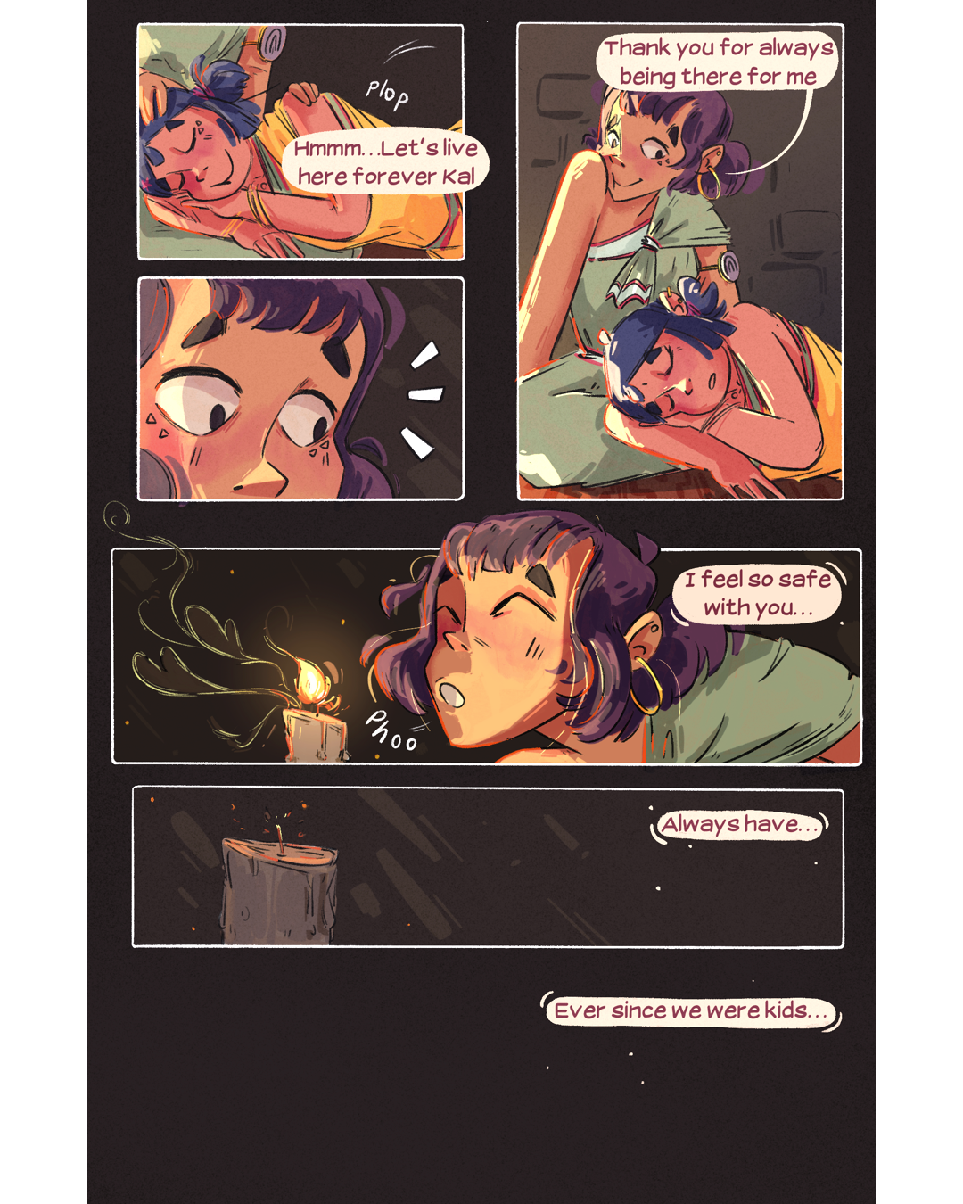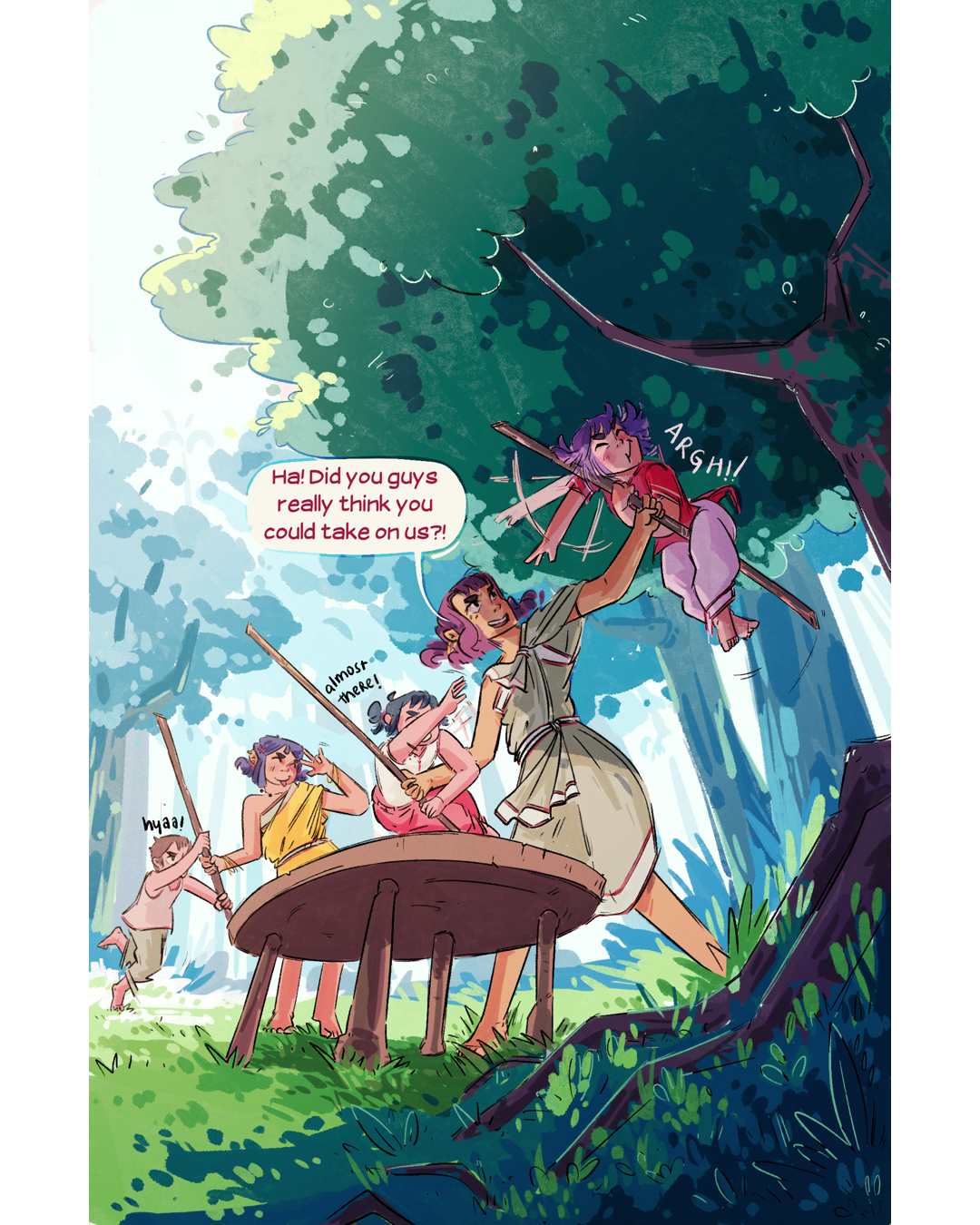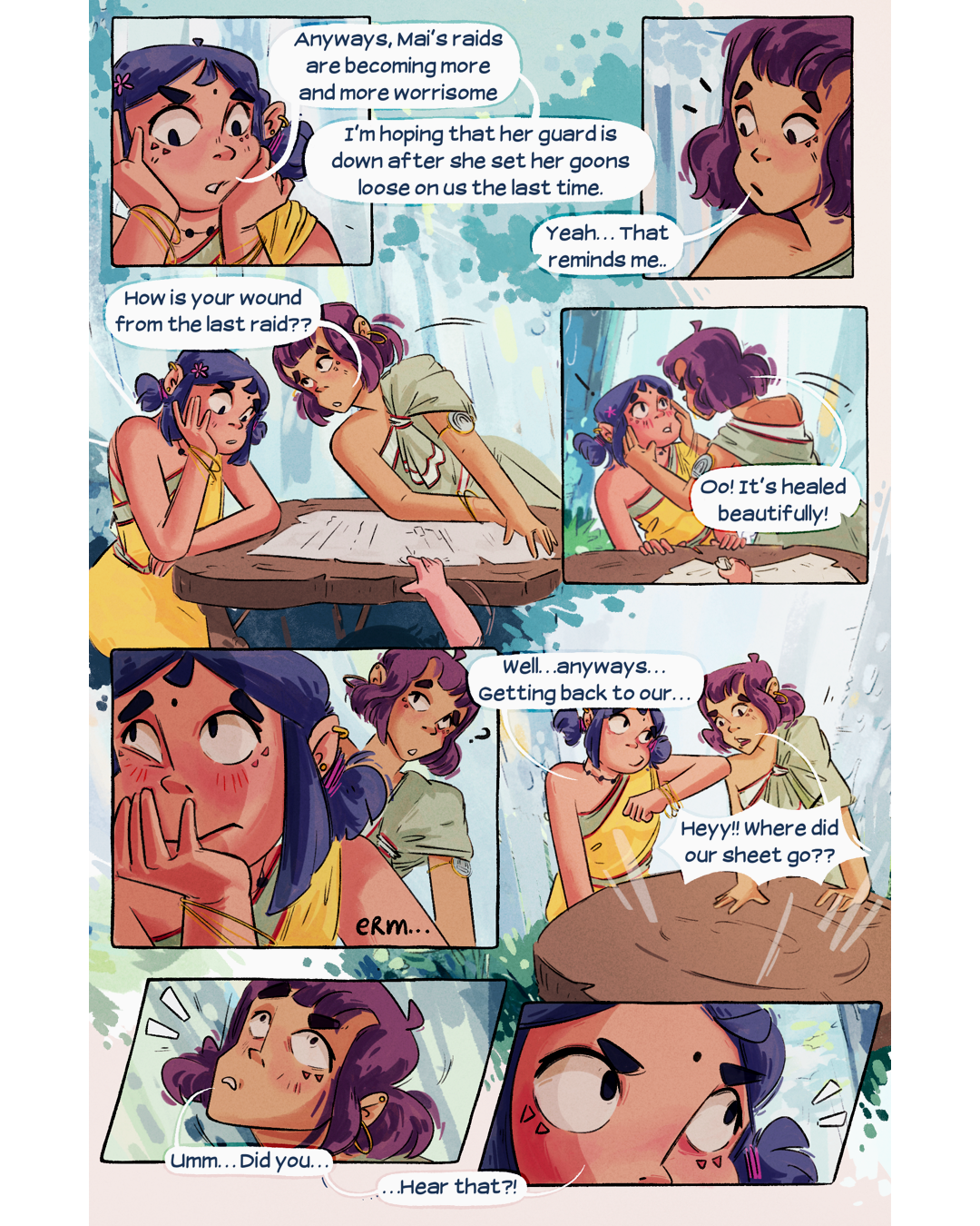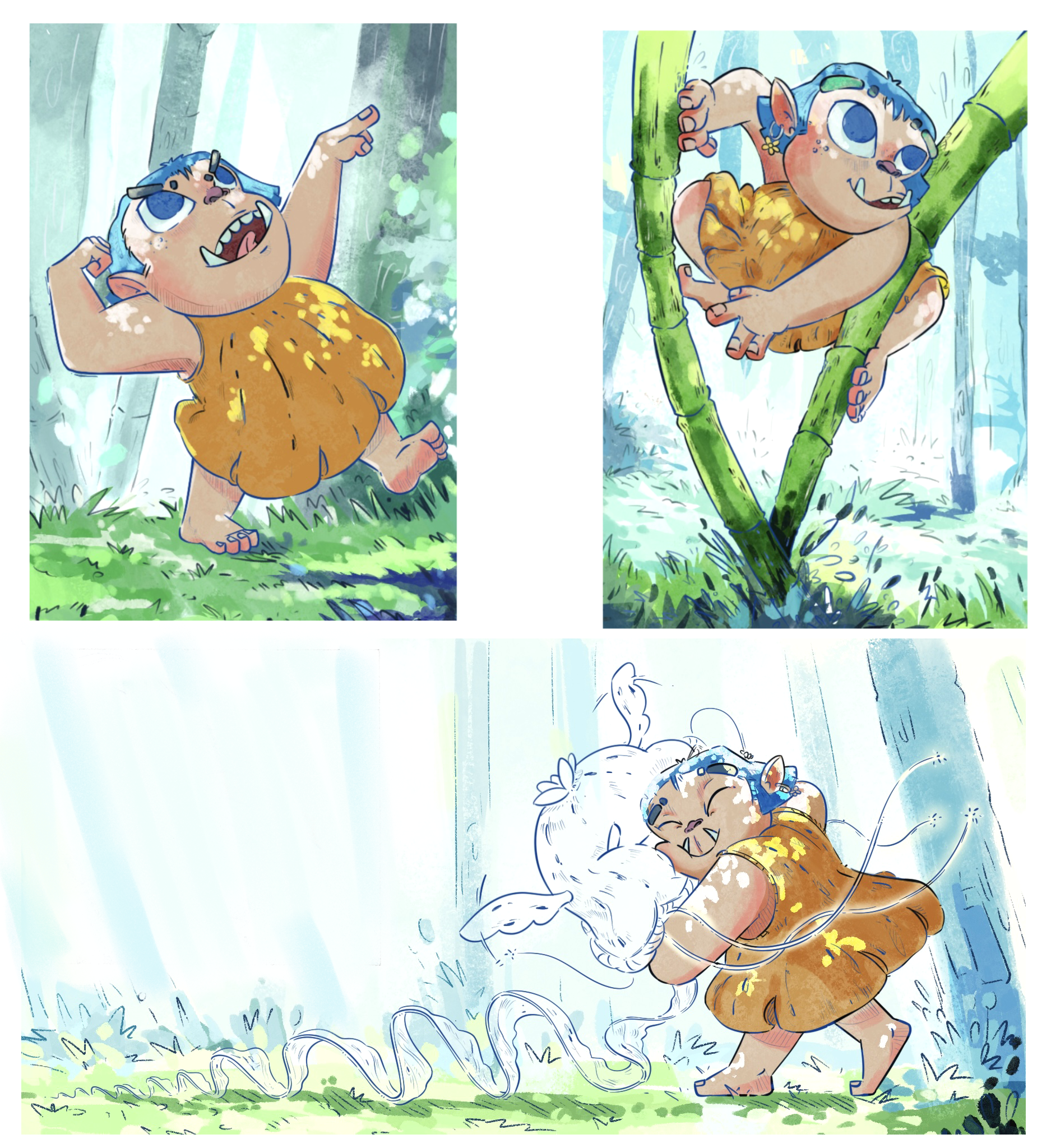 This story is about a little forest creature, Ila, who lives in a community whose members travel around by surfing the wind on leaves. There is a tradition in her village where its members befriend and bond with wild forest spirits and become lifelong companions. They form this bond by the music of whistling, which Ila is unfortunately terrible at. So, this comic follow her journey of finding her wind spirit companion in her own unique way.