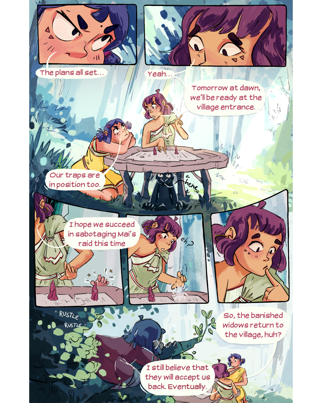 This is a story of two 17 year old girls, Kalyani and Mala, who are recently widowed. They are childhood friends, and after the tragedy they run away to the forest together with their kids to escape from being forced to remarry. This comic shows their journey as they make a home in the wilderness despite all the dangers, experiencing more freedom out there than they ever did in their village.